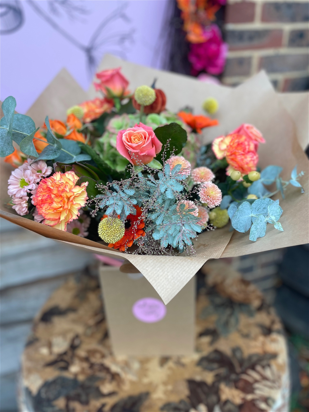 Limited edition bouquet- seasonal shades of flowers, foliage and berries.